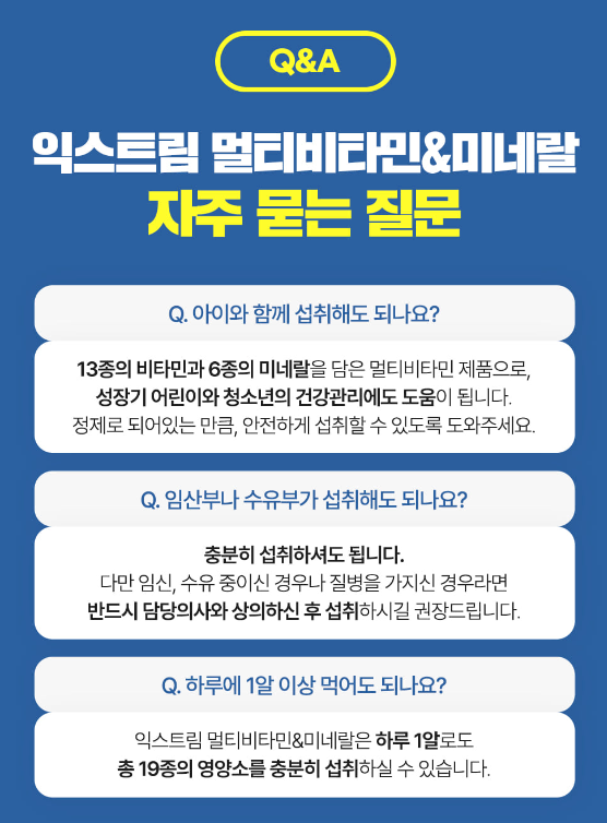 - 13가지 비타민과 6가지 미네랄을 꽉 채워 담았으며